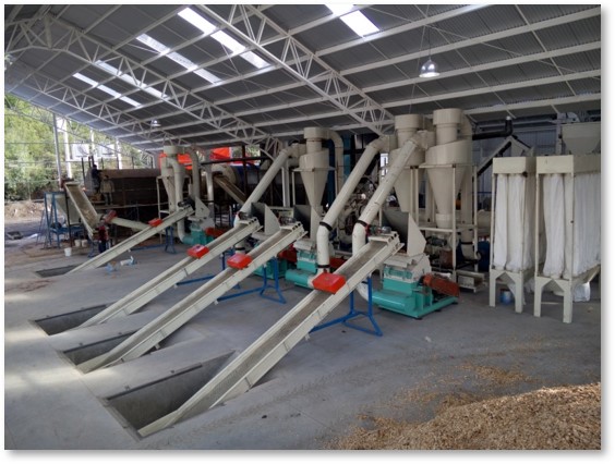 Planta construida en Chile en el año 2015, la biomasa utilizada es Pino y Eucaliptus , esta planta se compone de astilladora, trituradora de martillos, secadora, prensa de pellets, enfriador, embalaje final.