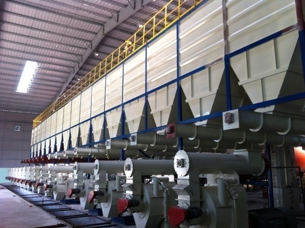 Planta construida en el Vietnam en el año 2014, la biomasa utilizada es el Pino , esta planta se compone de astilladora, trituradora de martillos, secadora, prensa de pellets, enfriador, embalaje final.